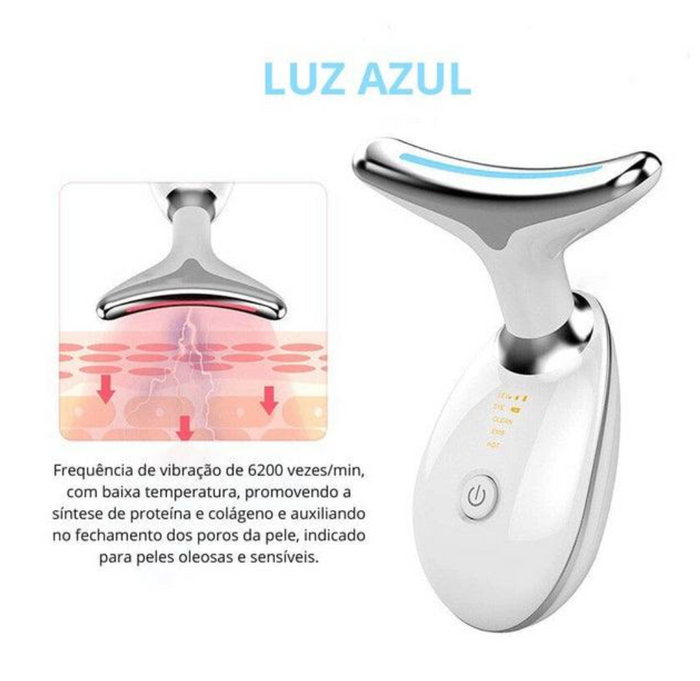 Recomendamos que utilize a luz de LED da cor Azul, pois tem uma baixa temperatura que promove a síntese de proteínas e do colágeno em sua pele